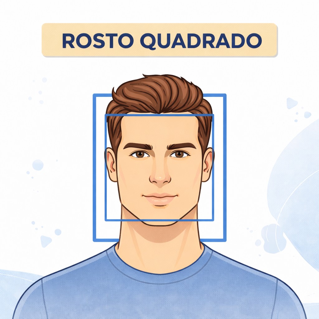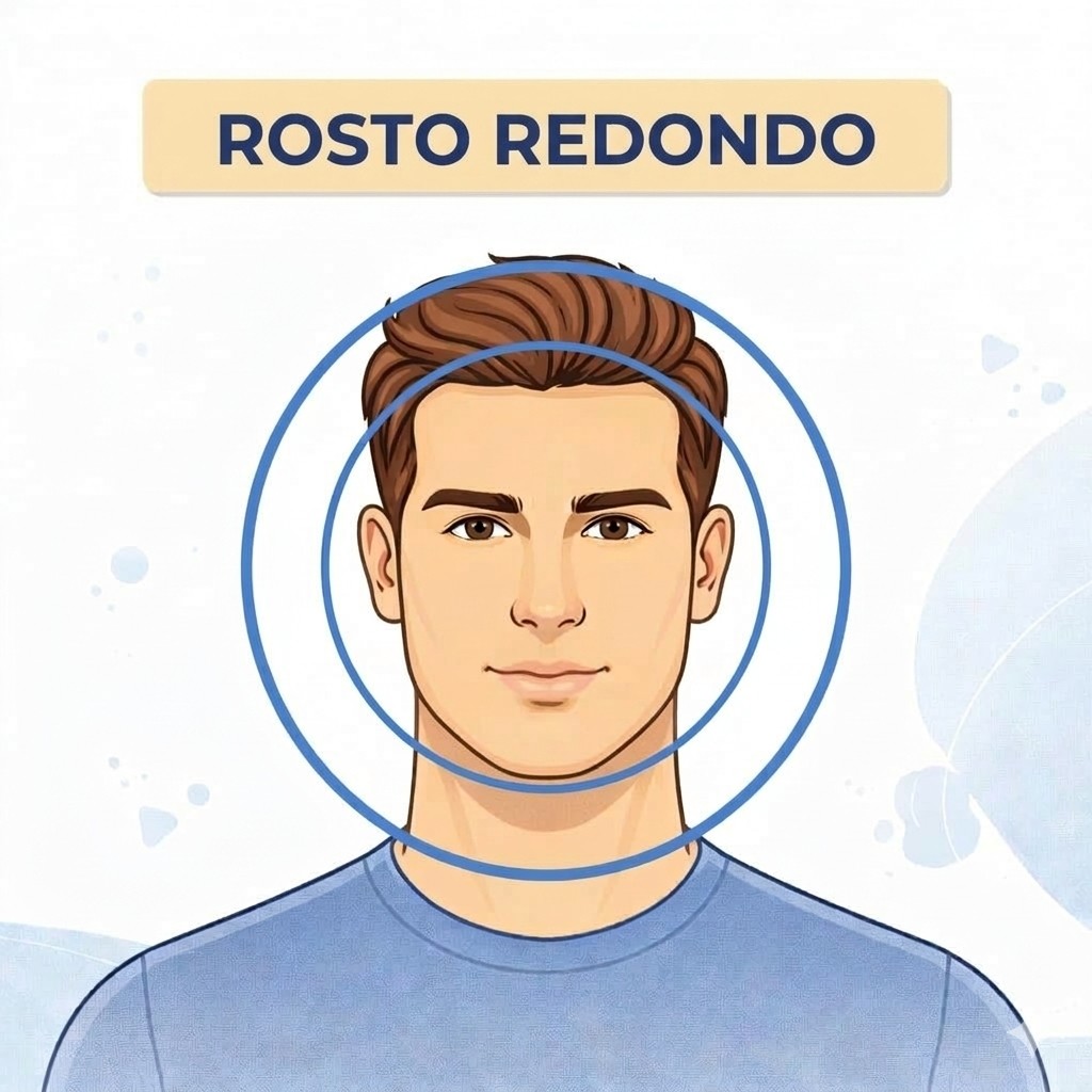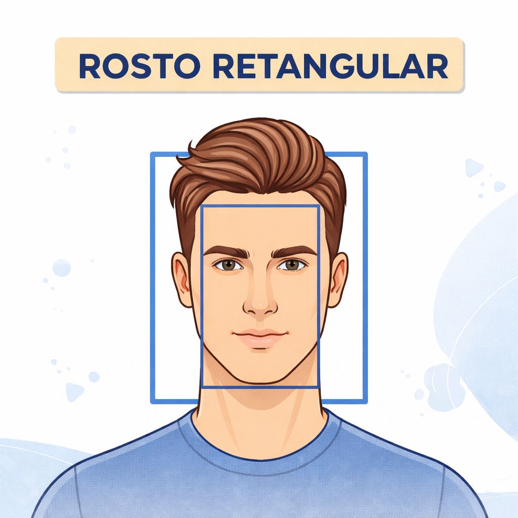 Sugestão de corte: Evitar cobrir a testa e manter o cabelo com mais comprimento na parte de trás.